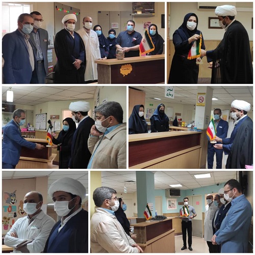 به مناسبت دهه فجر انقلاب اسلامی ایران، پرچمهای رومیزی جمهوری اسلامی ایران به بخشهای مختلف بیمارستان اهدا شد.