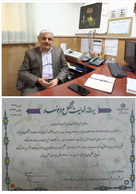 محمدی خاطر نشان کرد به لطف الهی و پیگیری های انجام شده، دفتر موسسه موفق به اخذ پروانه فعالیت از وزارت کشور در اسفند سال 1401 گردیده است.
