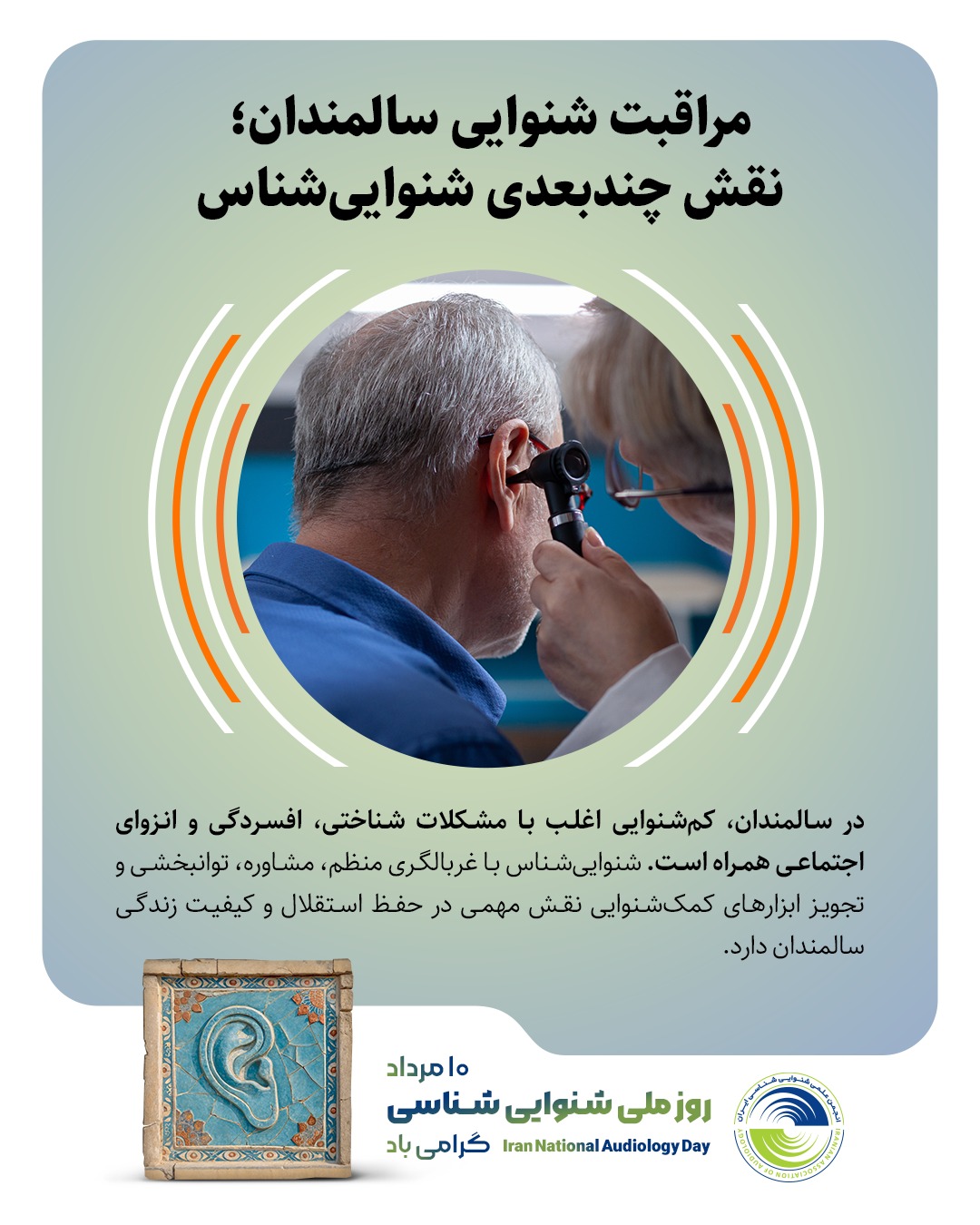 به مناسبت دهم مرداد ماه روز ملی شنوایی شناسی و به منظور تکریم سالمندان ارجمند مقرر گردید بخش شنوایی بیمارستان توانبخشی رفیده روز یکشنبه 12 مرداد با انجام غربالگری قوای شنوایی میزبان جامعه هدف باشد.