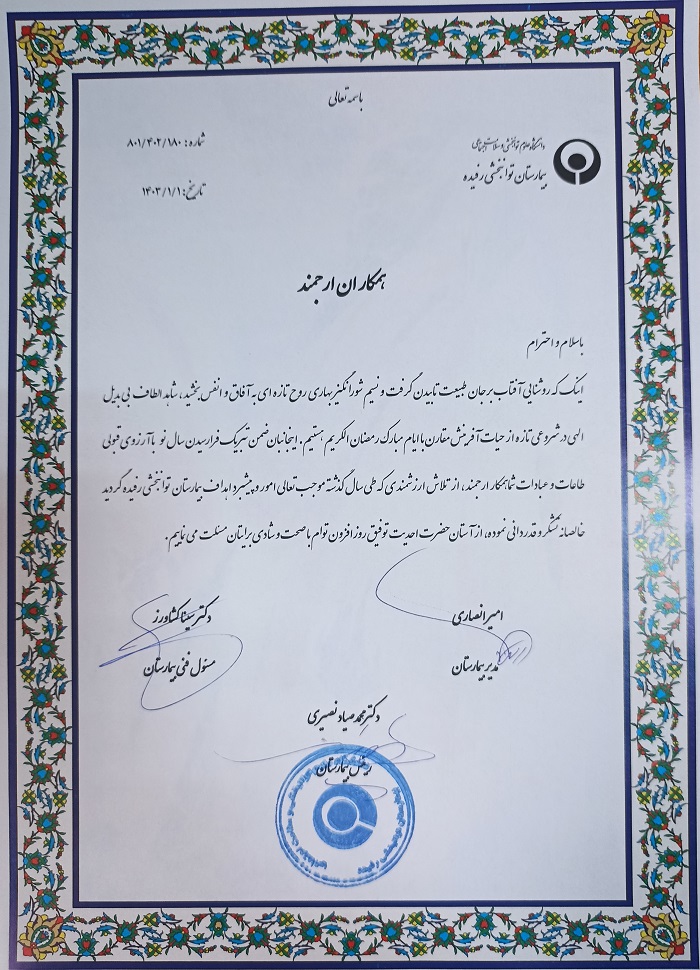 پیام تبریک نوروزی تیم مدیریت بیمارستان