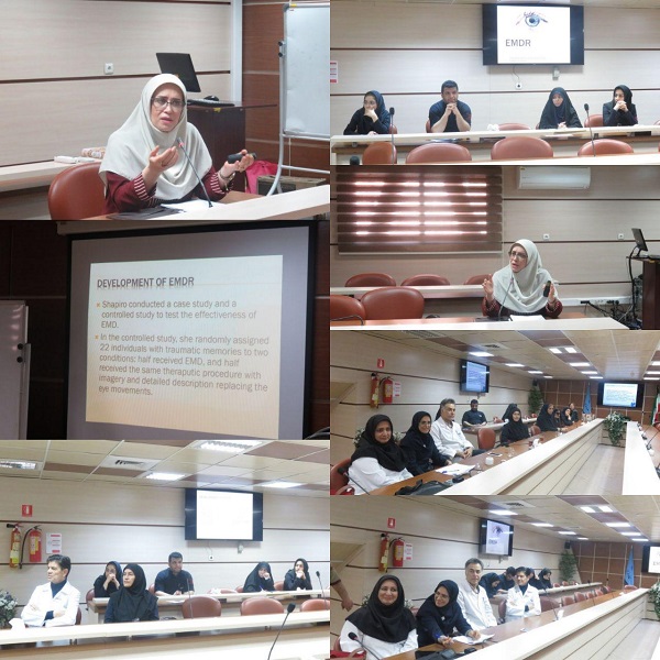 چهارشنبه مورخ 97/12/22 کلاس آموزشی movement Desensitization Reprocessing (EMDR) حساسیت زدایی و پردازش مجدد با حرکت متناوب چشم توسط خانم مریم پوررضا کارشناس ارشد روانشناسی بالینی و دانشجوی دکترا در تالار سخن بیمارستان توانبخشی رفیده با هماهنگی سوپروایزر آموزشی پروین عصمتی برای کلیه پرسنل برگزار گردید.