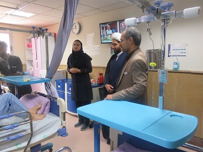 عیادت حجت الاسلام والمسلمین دکتر محمد افشاری مسئول نهاد نمایندگی مقام معظم رهبری در دانشگاه از بیماران بیمارستان مصادف با عید سعید غدیر