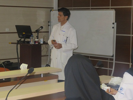 کارگاه زخم در روز یکشنبه مورخ 97/4/17در تالار سخن بیمارستان توانبخشی با پخش تلاوتی چند از آیات قرآن و سرود ملی اغاز گردید. این کارگاه که با هماهنگی سوپر وایزر آموزشی بیمارستان پروین عصمتی برگزار شد همایون راحمی کارشناس ارشد پرستاری و کارشناس زخم شرکت کیتوتک در مورد ساختار و فیزیولوژی پوست و پانسمان های نوین ، سپس دکتر هاشم شمشادی استاد دانشگاه علوم بهزیستی و تونبخشی ، معاون آموزشی بیمارستان و فوق تخصص جراحی ترمیمی در مورد پاتوفیزیولوژی زخم ، دکتر خراسانی متخصص جراحی و عضو هیأت علمی دانشگاه علوم بهزیستی و توانبخشی در مورد جراحی فلپ و نحوه پیشگیری از زخم ، دکتر حسین اخوان زنجانی متخصص عفونی در مورد زخم بستر و پای دیابتیکی ، فاطمه نیسه کارشناس ارشد پرستاری و دانشجوی دکترای پرستاری در مورد مراقبت های پرستاری در زخم و برگه های فلوشیت زخم سخنرانی کردند.