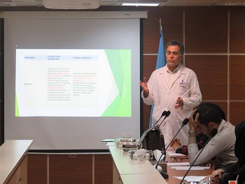 روز چهارشنبه مورخ 96/8/6 از ساعت 8 الی 12  کنفرانس علمی یکروزه نمونه گیری صحیح آزمایشگاهی با حضور دکتر شمشادی معاون آموزشی و هماهنگی خانم عصمتی سوپروایزر آموزشی بیمارستان برای پرسنل پرستاری و آزمایشگاه در تالار سخن بیمارستان توانبخشی رفیده برگزار گردید.  این کنفرانس آموزشی توسط خانم دکترکیهانی متخصص پاتولوژی و رئیس واحد آزمایشگاه  و دکتر اخوان معاون درمان بیمارستان و متخصص عفونی ارائه گردید. ر این کنفرانس نمونه گیری صحیح آنالیز ادرار و کشت ادرار بطور مستقیم و غیر مستقیم و تأثیر در جواب دهی ، نحوه نمونه گیری از مایعات جهت انجام تست های میکروبیولوژی ، احتیاطات استاندارد لازم زمان نمونه گیری و انجام آزمایشات در محیط آزمایشگاه برای جلوگیری از انتقال عفونت در بیماری ها ی عفونی شایع ، نکات کلیدی در موقع نمونه گیری خون جهت جواب دهی بهتر و نمونه خلط و چگونگی ارسال آن به آزمایشگاه آموزش داده شد.